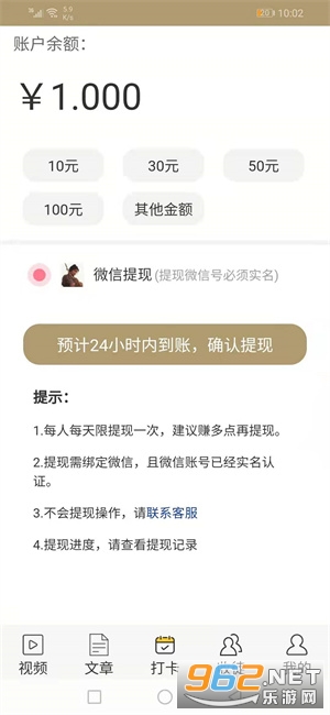 3、初夏网满20元起提现到,每人每天限提一次,24小时内审核到账