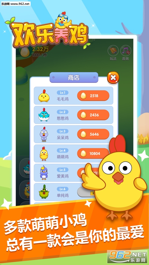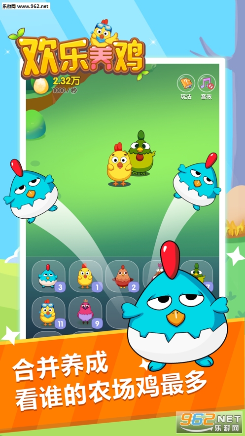 欢乐养鸡是一款休闲益智的合成闯关游戏。玩家在游戏中可以召唤小鸡;