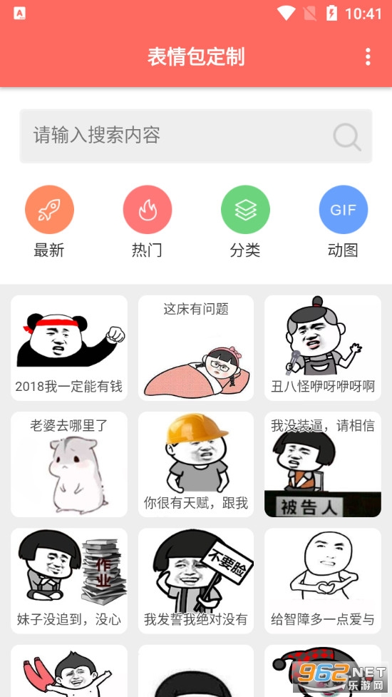 《表情包定制软件》是一款为朋友们打造的自定义表情包的制作软件,现在朋友们聊天都喜欢发送表情包,有时候我们找不到合适的表情包,可以使用本款软件来自己进行制作,有着丰富的模板可以选择,可以自由的输入文字,还有着大量的动态表情等可以使用。