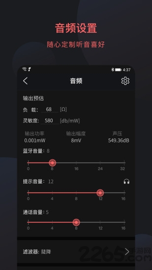 3、支持相关音频设置,如滤波器、声道平衡等;