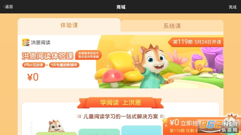 《洪恩阅读》是一款优秀的儿童教育启蒙软件,深受广大家长们的一致好评,上面有各种趣味特色课程,还有专业的名师辅导,直接给你的孩子购买一对一辅导,这样能更快的掌握重要知识点,还能在欢乐的学习环境中培养对各种学科的浓厚学习兴趣,需要的话可以在这里直接下载哦。