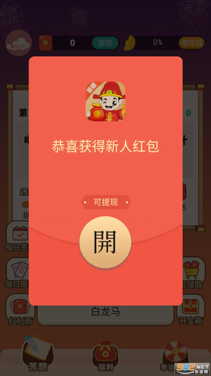 答题得宝红包版是一款休闲有趣的答题游戏。整合了很多答题类型,每个关卡模式题目都是随机出现的。覆盖了国学、天文、地理等知识内容,能够让玩家在答题互动的同时增长知识。喜欢这个游戏的玩家欢迎下载。