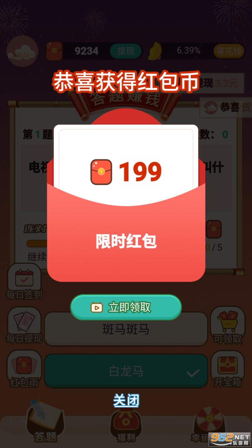 这里的题目非常简单,每五题就可以领一次大红包,平时还有红包雨,红包很多,提现也是秒到,就是广告稍微多了点,不过每个广告都不长,不算特别费时!