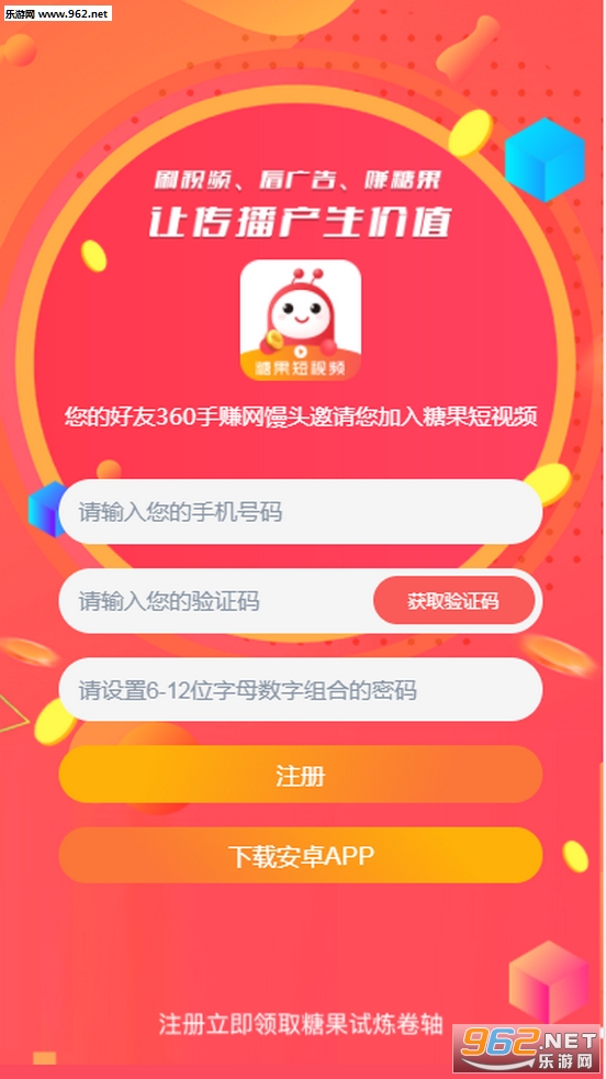 《糖果短视频app》是一款非常有趣的看视频赚钱软件,平台拥有最好玩有趣的赚钱模式,用户可以通过每天的看视频来获得收益,海量有趣的视频等你来体验,你也可以自己进行拍摄,感兴趣的欢迎下载!