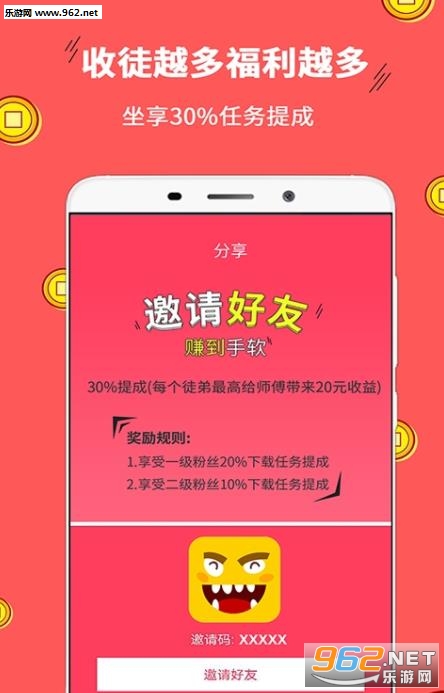 4、邀请好友进行收徒,每天都可获得徒弟的进贡奖励,超多奖励。