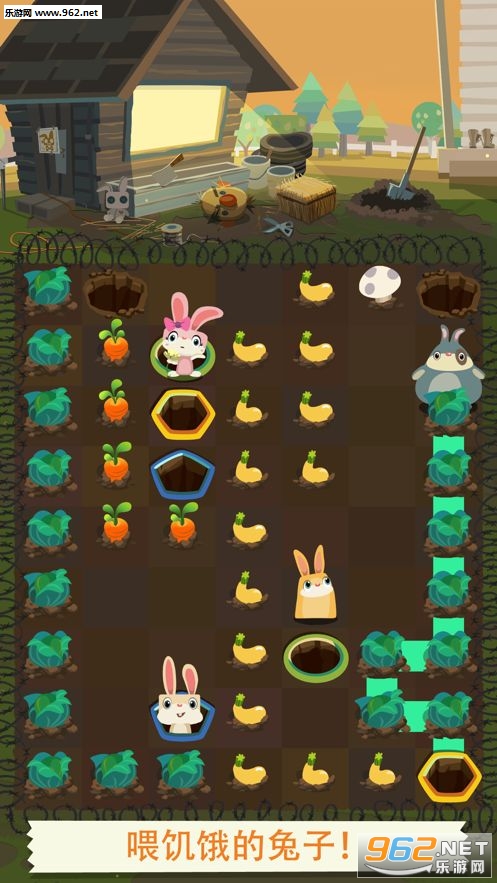 3、海量的游戏关卡,随时在商城购买升级你的农场,购买更多小兔子回来。