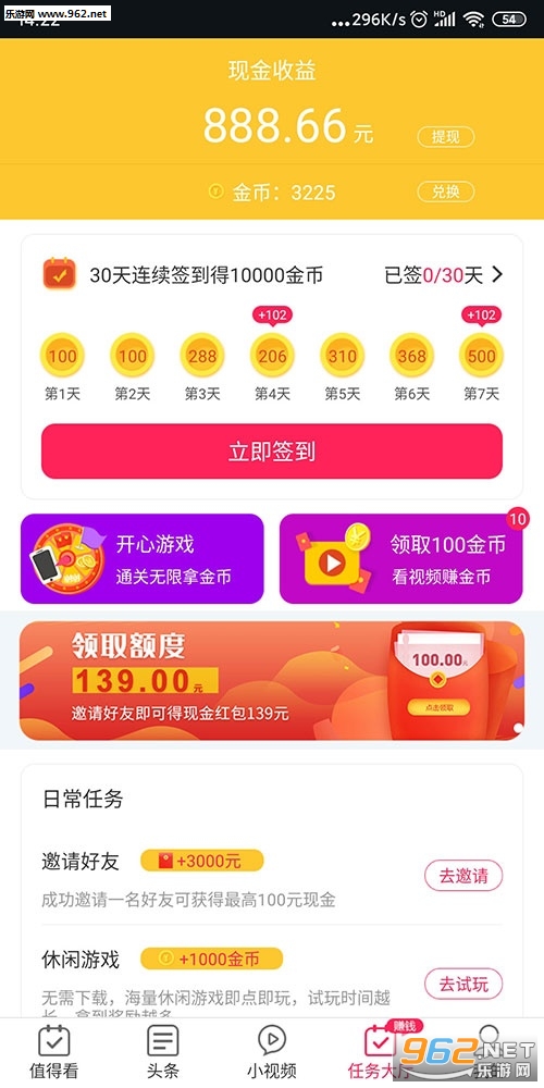 一款短视频、新闻资讯APP,任务内容简单,每天看看视频,刷刷新闻资讯,新手阶段更是有大额金币奖励,先到先得。