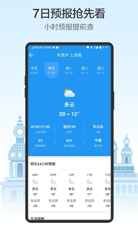 ·逐时预报:实时掌握24小时天气变化,当天温差提前预防