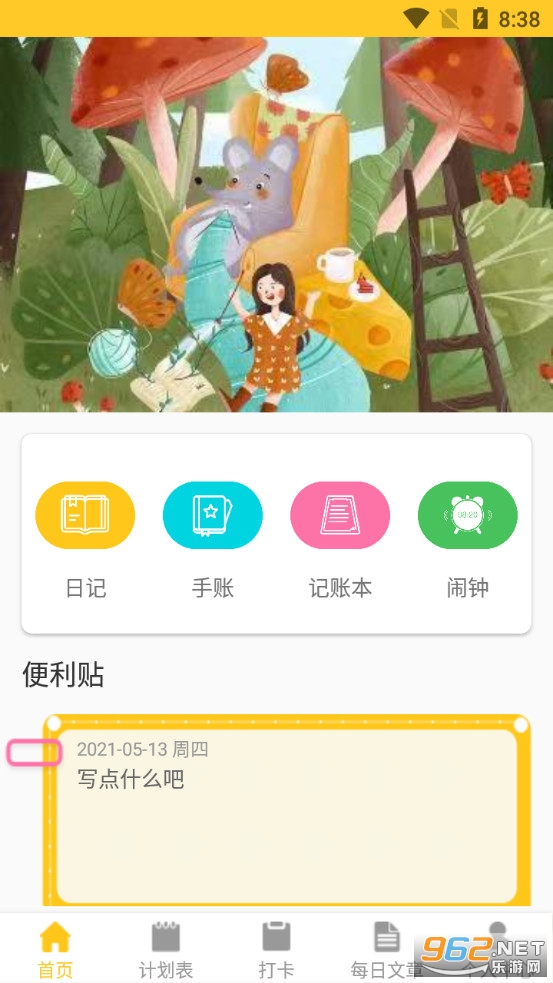 《随心记app》是一款为朋友们答案在的随时随地记录美好生活的记录软件,随心记app有着日记、手账、记事本和闹钟四种功能,朋友们可以在软件中记录自己生活中的点点滴滴,可以设置行程,可以进行提醒,还可以设定闹钟,简单方便。