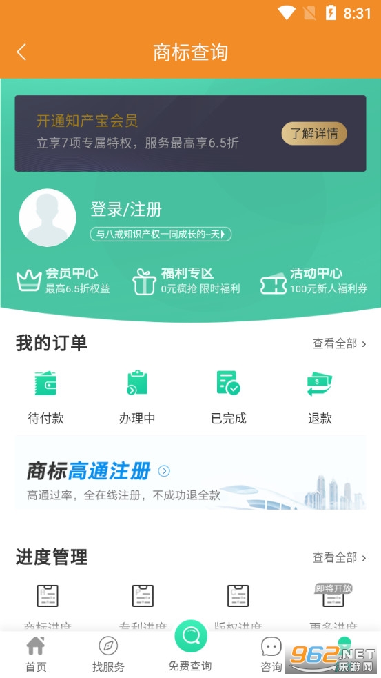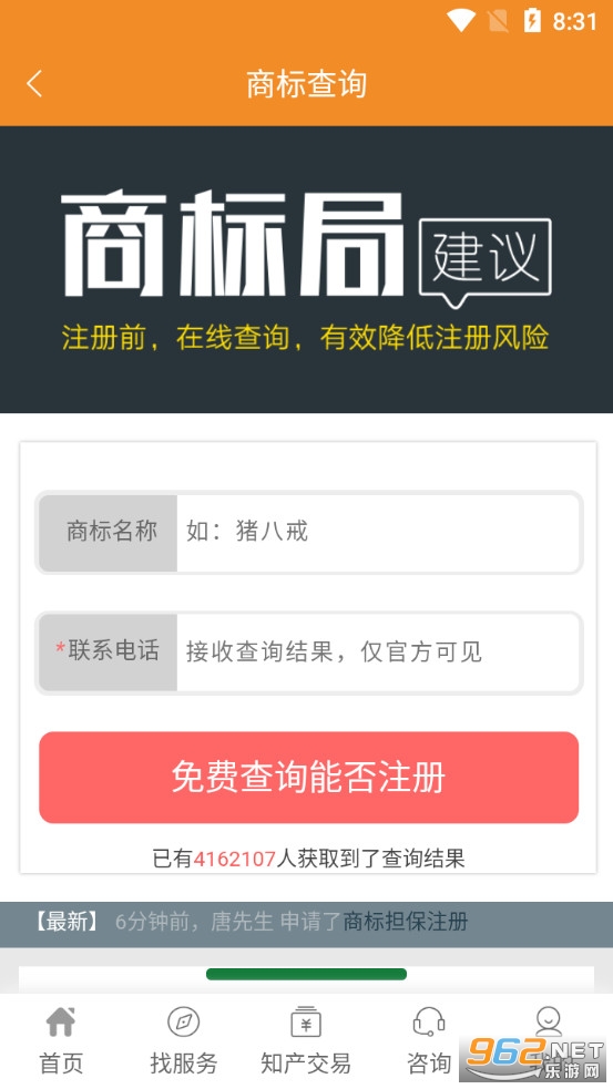 商标查询APP为用户提供商标状态查询、商标注册、商标交易等服务。