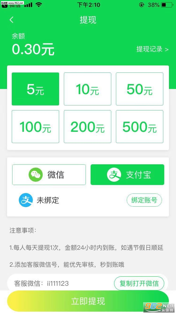 ②低门槛余额满5元即可提现到、支付宝钱包,提现秒到账