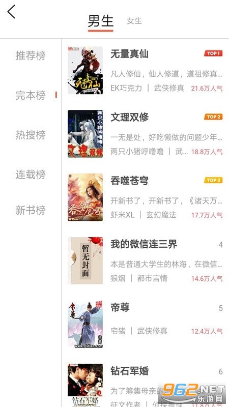 1、热门网络小说app,精选优质排行榜单,资源丰富,题材全面,界面无广告。