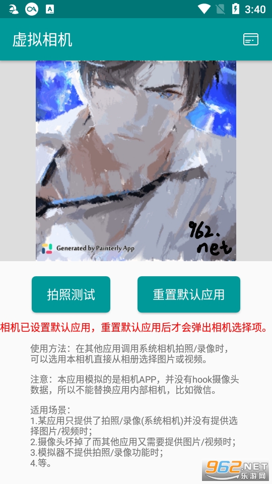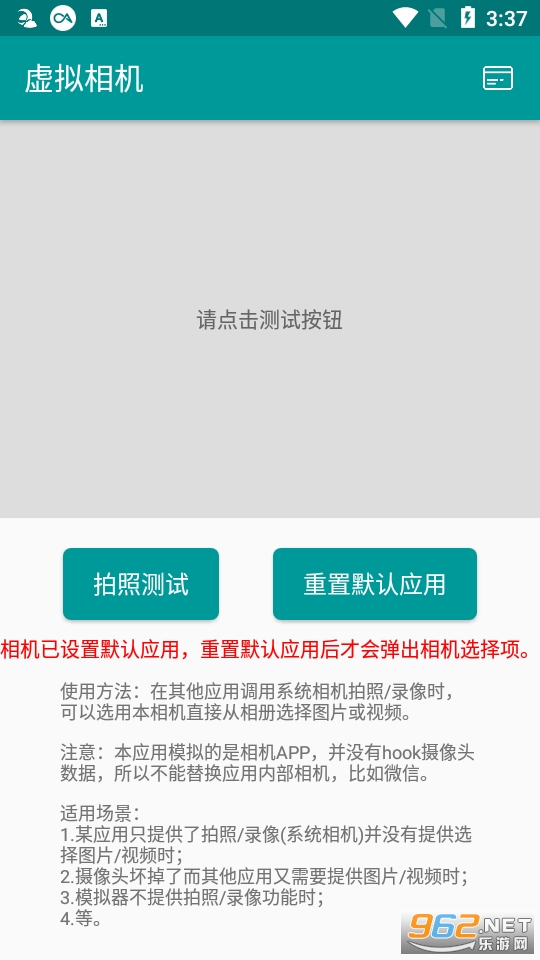 注意:本应用模拟的是相机APP,并没有hook摄像头数据,所以不能替换应用内部相机,比如。