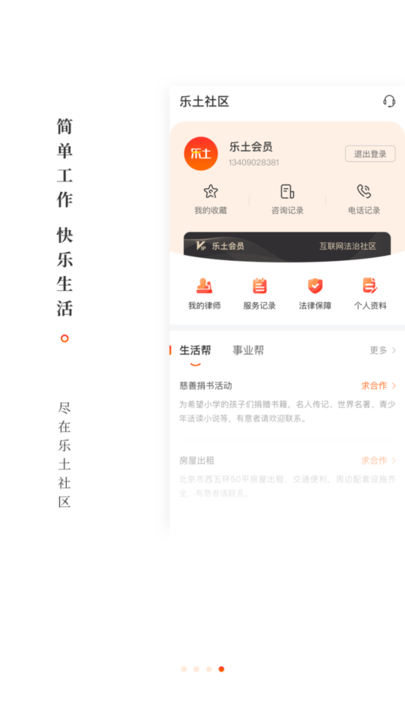 乐土社区app是一款生活服务软件。乐土社区app为用户打造一个互联网法律援助平台,方便用户在这里了解法律知识自己保护自己,也方便用户在这里寻求专业律师的法律的援助服务,为用户寻找律师提供帮助。喜欢就来这里下载使用吧。