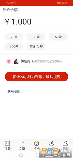 3、大雁资讯满20元起提现到钱包,每人每天可申请提现一次,24小时内审核到账