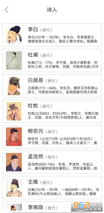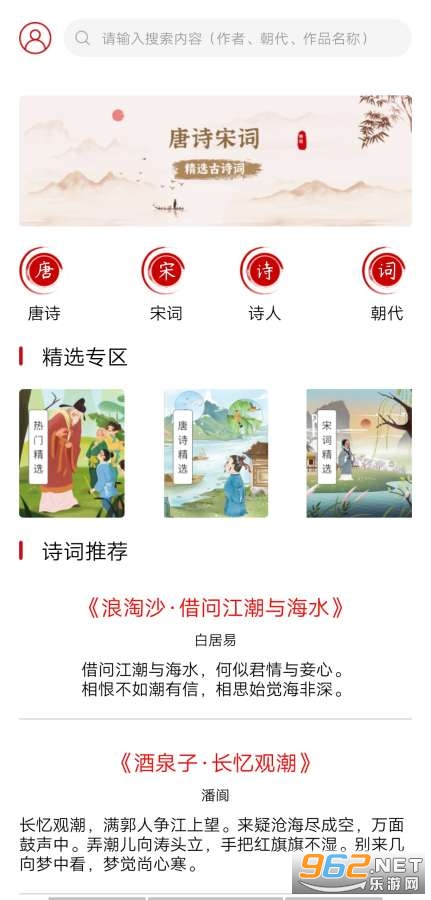 一款实用的诗词阅读赏析app,涵盖了从小学到高中的所有古诗词资源,可以按照标题、作者和内容进行选择,收录6000多首诗词,涵盖秦楚汉、唐宋元、近现代,近700百位诗人,包含诗词赏析解析和作者介绍,并带有古诗词朗诵功能,有用到的话可以在下方下载。