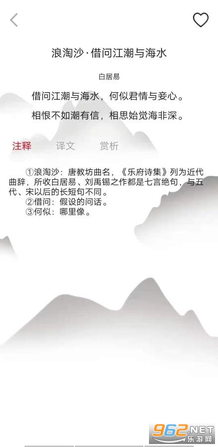 《古诗品鉴》是一款实用的古诗词鉴赏软件,中小学生必备的语文学习软件,上面汇聚了书本里面所有的古诗词,一些没有收录教材的诗词也能找到,最专业最详细的诗词鉴赏,还有通俗易懂的白话文解析,逐字逐词的注释解释,让你能更快的明白诗词的意思,明白作者当时的意境。