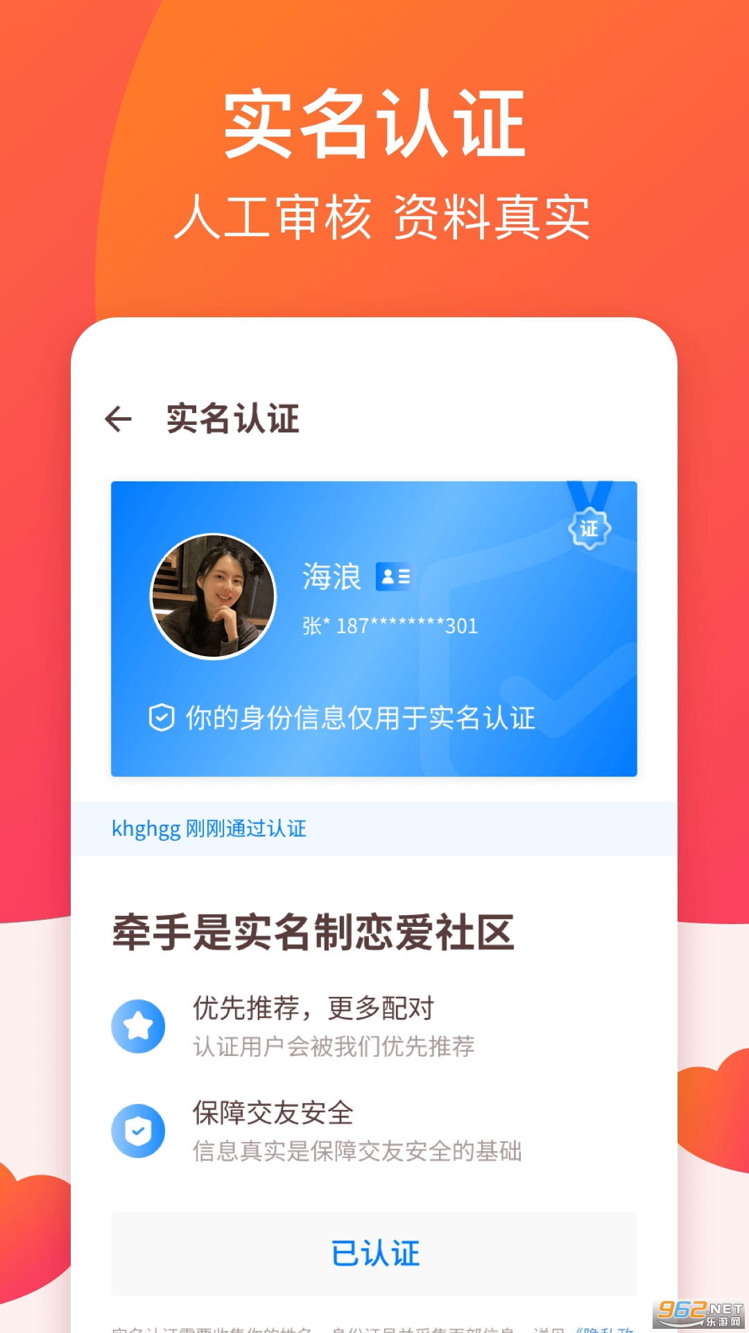 【真人认证】身份证+人脸认证,人工审核靠谱恋爱