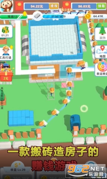 我是包工头红包版是一款模拟体验的建房模拟休闲益智手游,在我是包工头这里去参与到各种精彩的趣味冒险,不断的获取到趣味的游戏玩法,获取到我是包工头游戏中更多丰厚的奖励,完成各种趣味的挑战,你只用安排好工人在时限内搭建好房屋,就能完成我是包工头红包版的任务拿到红包,轻轻松松放置玩法,每一关都能够增加红包金额,快来玩玩吧。