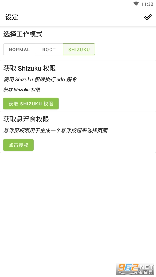 Shizuku 模式则无需 Root 权限即可实现 Root 模式的功能。