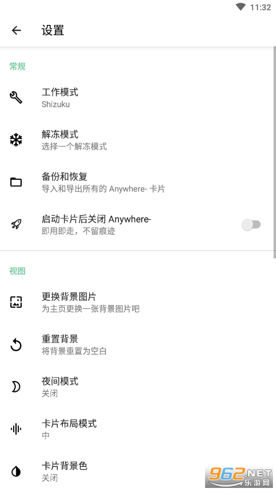 Anywhere- 分为三个模式:无 Root,Root,Shizuku。