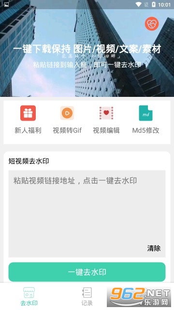 《去水印啦》是一款非常好用的去水印软件,拥有各种强大的功能,操作也很简单,只需要将视频连接提取出来放到指定空白栏处,然后点击一键去除水印就可以了,用户们还可以直接一键提取出无水印的视频,支持下载到手机文件夹中,非常的实用,有用到的朋友可以下载试用一下。