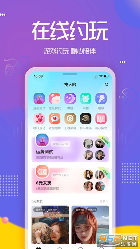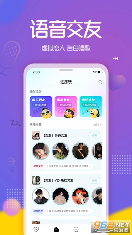 在这儿你可以同时与多位小哥哥小姐姐进行连麦互动,一起玩一起聊一起嗨,玩转声音的魅力。你也可以找个人安安静静陪你来一局王者或吃鸡,唱一首歌或聊一宿天,做你的专属虚拟恋人。