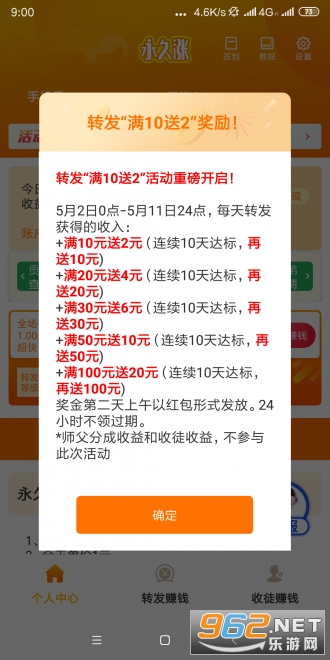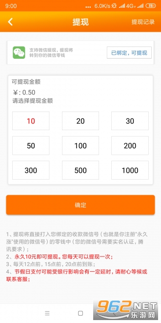在永久涨上赚取的奖励永久满10元可申请提现,首次提现秒到,后续24小时到账