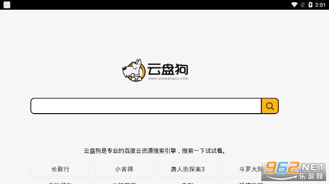 《云盘狗百度云网盘搜索》是一款高质量的百度网盘资源搜索站,界面简约,用户可以通过云盘够搜索视频,音乐,文档,小说,漫画,压缩包,游戏,软件等等各种类型的资源,操作方便,不需要登陆,可以直接下载到百度网盘,然后下载安装到手机,需要的话就来下载吧!