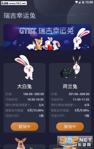 《瑞吉幸运兔app》是一款非常给力的手机区块链赚钱平台,软件拥有非常便捷的赚钱方式,通过养兔子来获得收益,不同品质的兔子累积的收益也会不一样,越稀有价值越高,感兴趣的老哥欢迎下载体验!