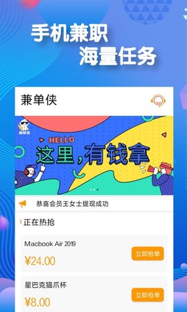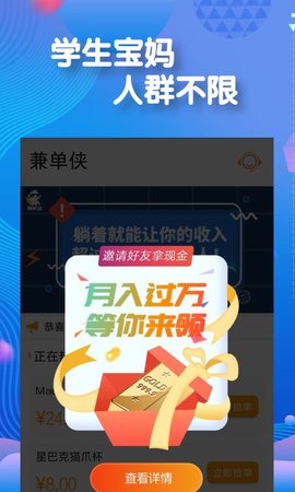 兼单侠软件是一款还不错的手机兼职赚钱的工具。兼单侠APP为用户提供了一个良好的手机兼职赚钱的服务,用户可以很方便的在上面找到自己想要的赚钱的方法,非常的好用的哟,喜欢这款软件的朋友就来下载体验吧!