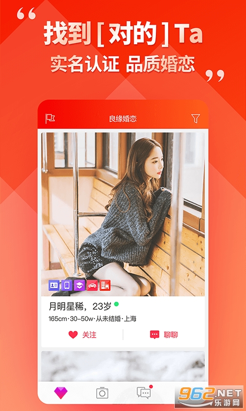 良缘婚恋,是一款真实的高品质婚恋交友软件。平台以高效、真诚、专业为服务核心,为单身男女找到属于自己的春天 。