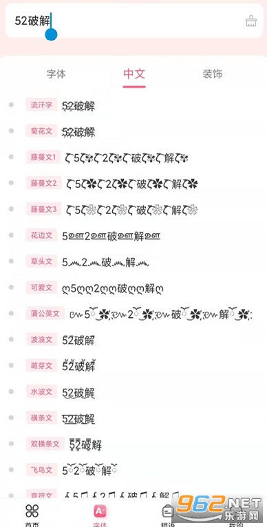 6、这里的字体搜索功能十分好用户,输入一个文字即可找到全部的特殊字体;