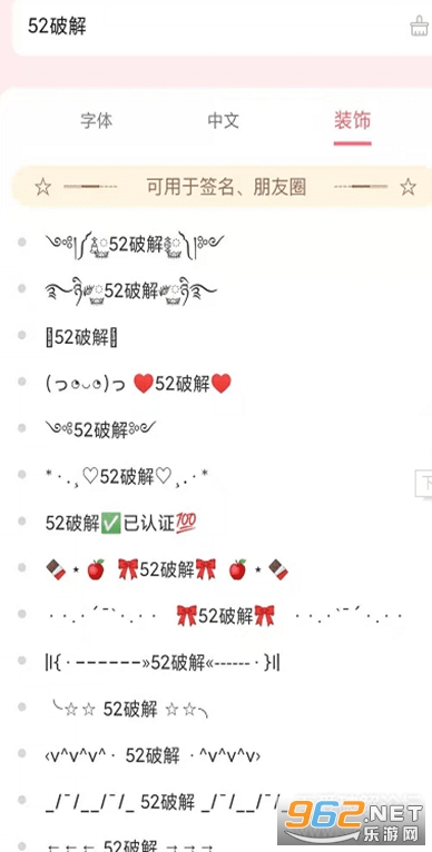 不错的特色文字和符号生成工具,可以在线一键生成各种文字符号,有着多种字体,还有着表白图,情人节等各种场合专用符号和字体等,有需要的朋友可以下载试试。