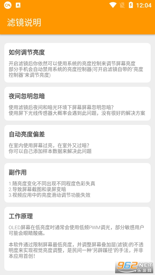 1、简单小巧的屏幕调节工具,主要是给手机屏幕添加滤镜;