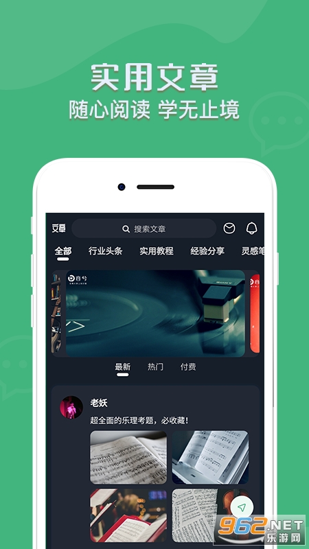 3、专栏文章,学技术、看资讯、聊圈子,专业的音乐全领域知识付费平台;