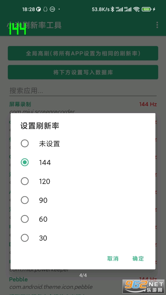3、可以实现 单个APP自定义刷新率、全局刷新率、5档调节;