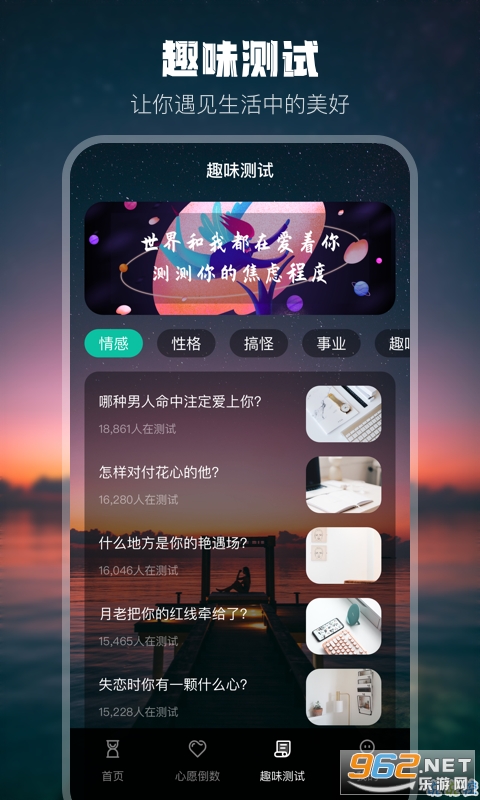 这里为你提供趣味测试、专业测试、情感测试、职业测试