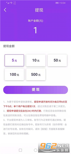 3、聚米资讯满5元即可提现到,首次提现秒到账,后续24小时内审核到账,每人每天限提一次