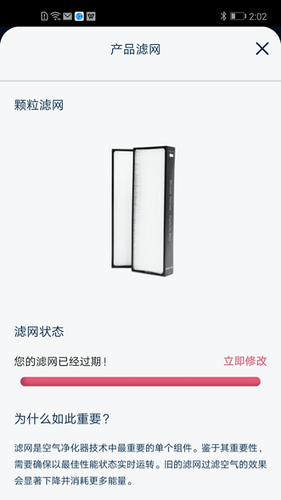 2、滤网状态一目了然,选择修改随意自由产品滤网信息详细。