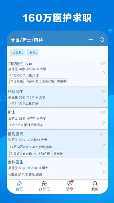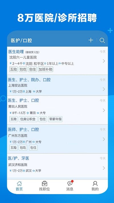 3、招聘板块提供全职岗位、实习机会、兼职工作及医疗机构招聘等信息。