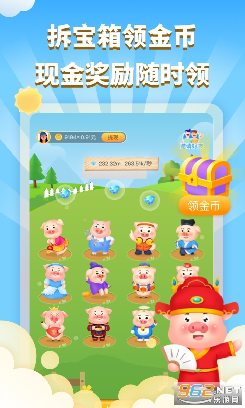 【养猪赚金币】小猪不断长大,放松心情的同时获得更多的金币,金币可以购买更高级的小猪,与小猪共同成长。
