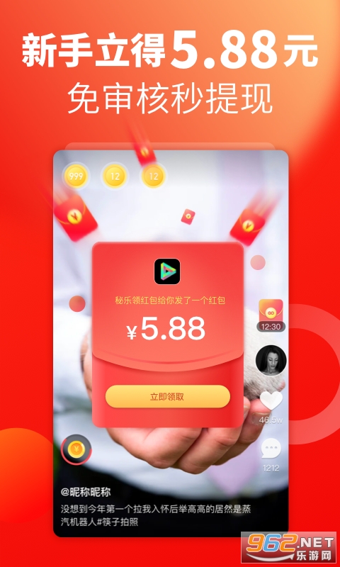 1、一款可以领现金红包的短视频软件,拥有丰富的短视频资源,用户可以随时随地观看不同的精彩世界,也可以发布视频来展示自己精彩的生活。