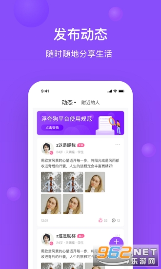 动态:图片分享生活,展示自己,认识新朋友;