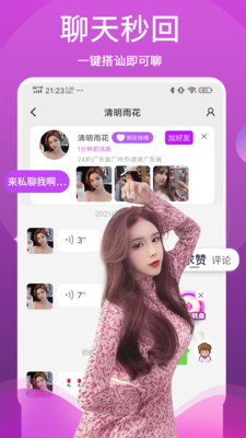 《蜜情app》是一款非常给力的美女聊天软件,这里能够快速结识到很多高颜值的精英用户,可以一起在线上聊天,一起交流互动。不仅如此哦,还能够一起在线下约见面,促进双方之间的感情,让你轻松脱单,感兴趣就来962下载试试吧!