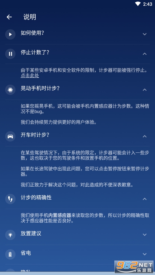 3、您可以随时暂停或开始计步以节省电量。一旦暂停,计步器将停止在后台刷新数据。您也可以重置今日步数,从0开始计数。
