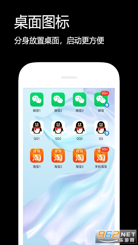 双开、分身或多开的应用如双开、分身、多开等可自定义图标、名称及添加到桌面等,方便快捷。