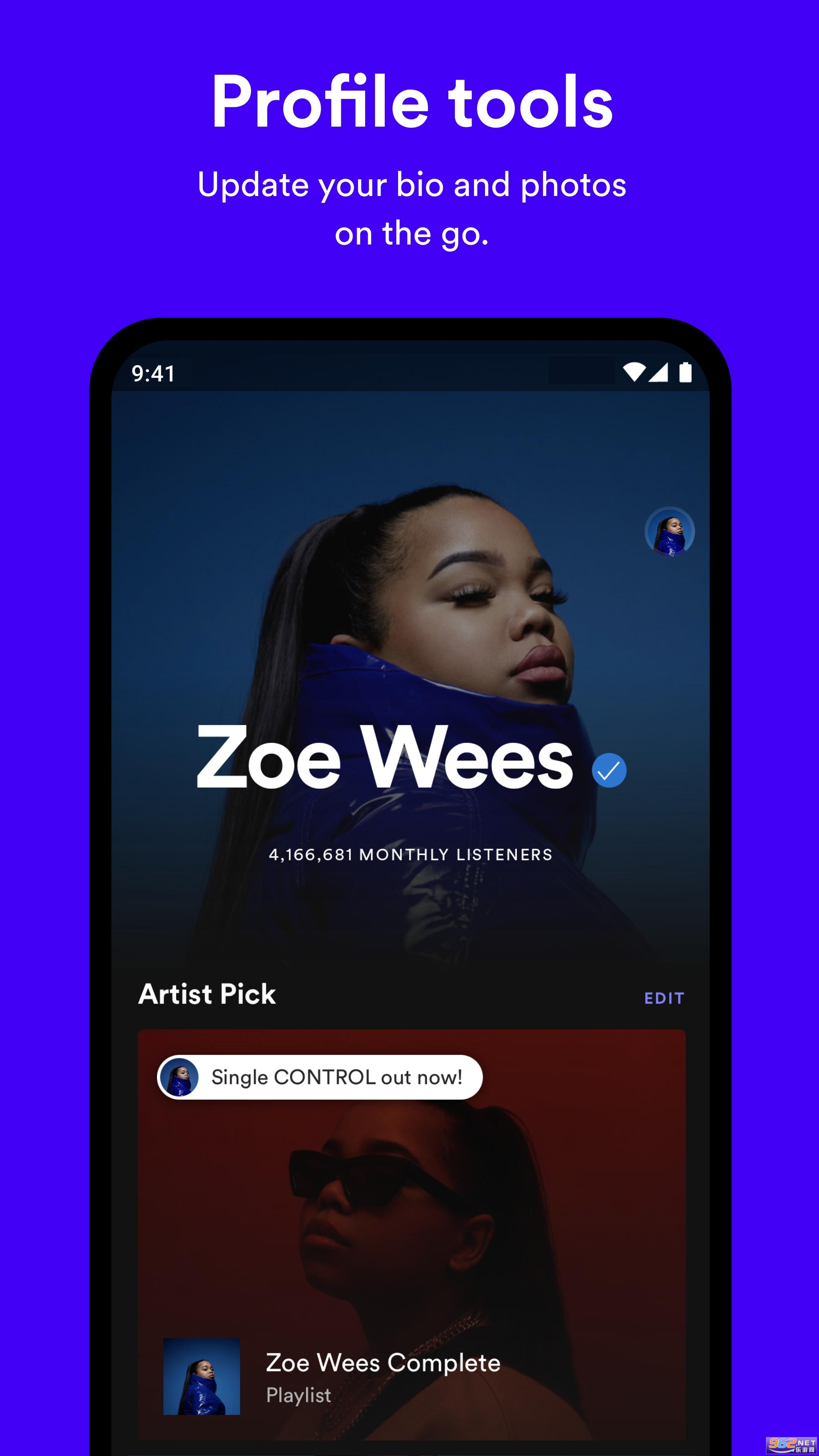 《Spotify for Artists》是一款专为艺术家吸引和管理粉丝的软件,通过本软件发布歌曲让更多人知道,随时更改自己的个人资料,向更多的听众展现你的个人魅力。