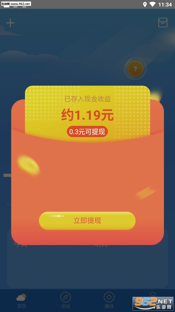 好天气APP又名全民天气通,是全民走路旗下的一款天气服务应用,新人登录送1元左右的红包,首次提现0.3元需要完成一些小任务才可以提现,稍微费点时间。