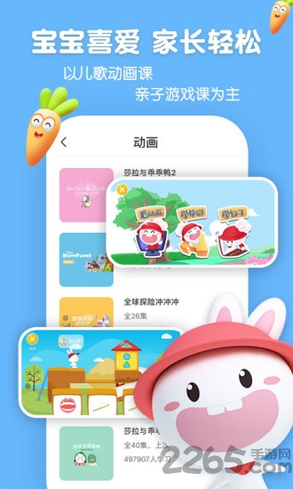 【海量资源】各种海量原创优质资源免费用。上百集在线优质BBC热门英语动画节目,搭配原创亲子英语游戏,纯正英文儿歌童话故事、以及丰富的英语单词卡、英语故事给孩子磨耳朵,全方位打造幼儿英语学习系统。